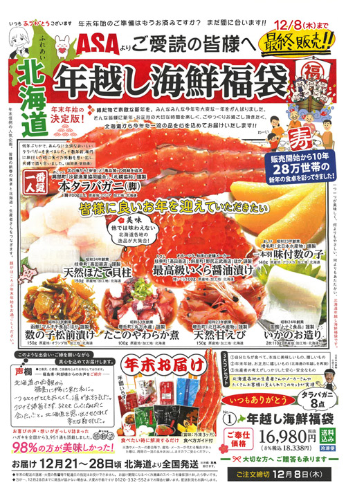物品販売お得物品販売にて、「年越し海鮮福袋」の販売を開始致しました。