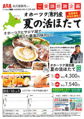 お得物品販売にて、「活ほたて・朝食セット」の販売を開始致しました。