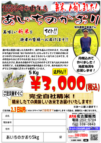 お得物品販売にて、「あいちのかおり」の販売を開始致しました。